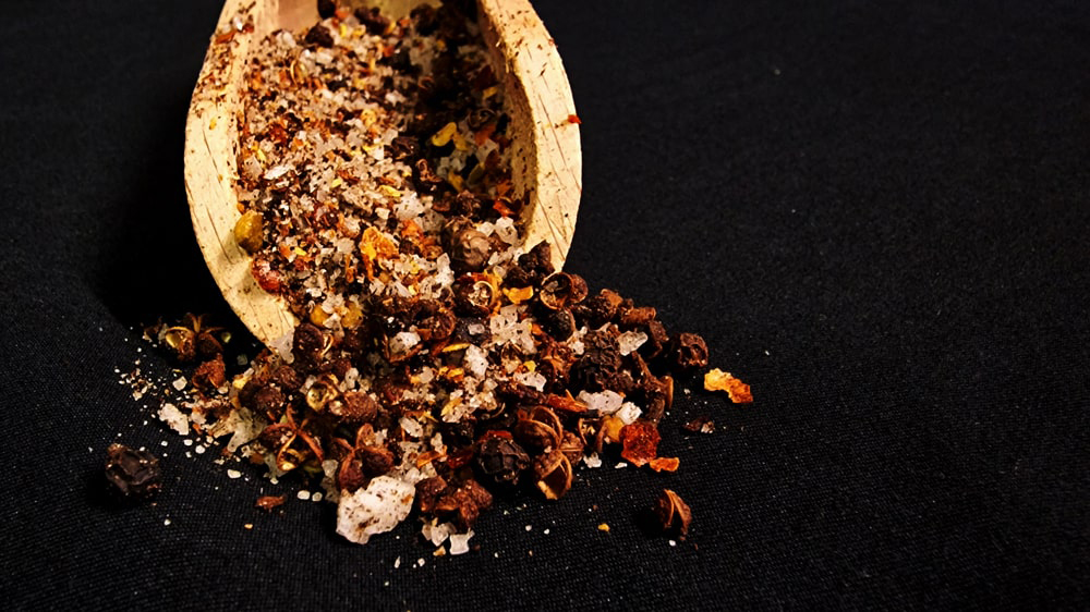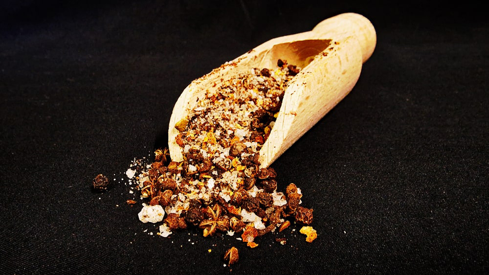 Zutaten: Luisenhaller Salinensalz, Mac Khen Pfeffer, Macmat Fruit, Hat Doi, Dak Lak Pfeffer, Chipotle, Aleppo
