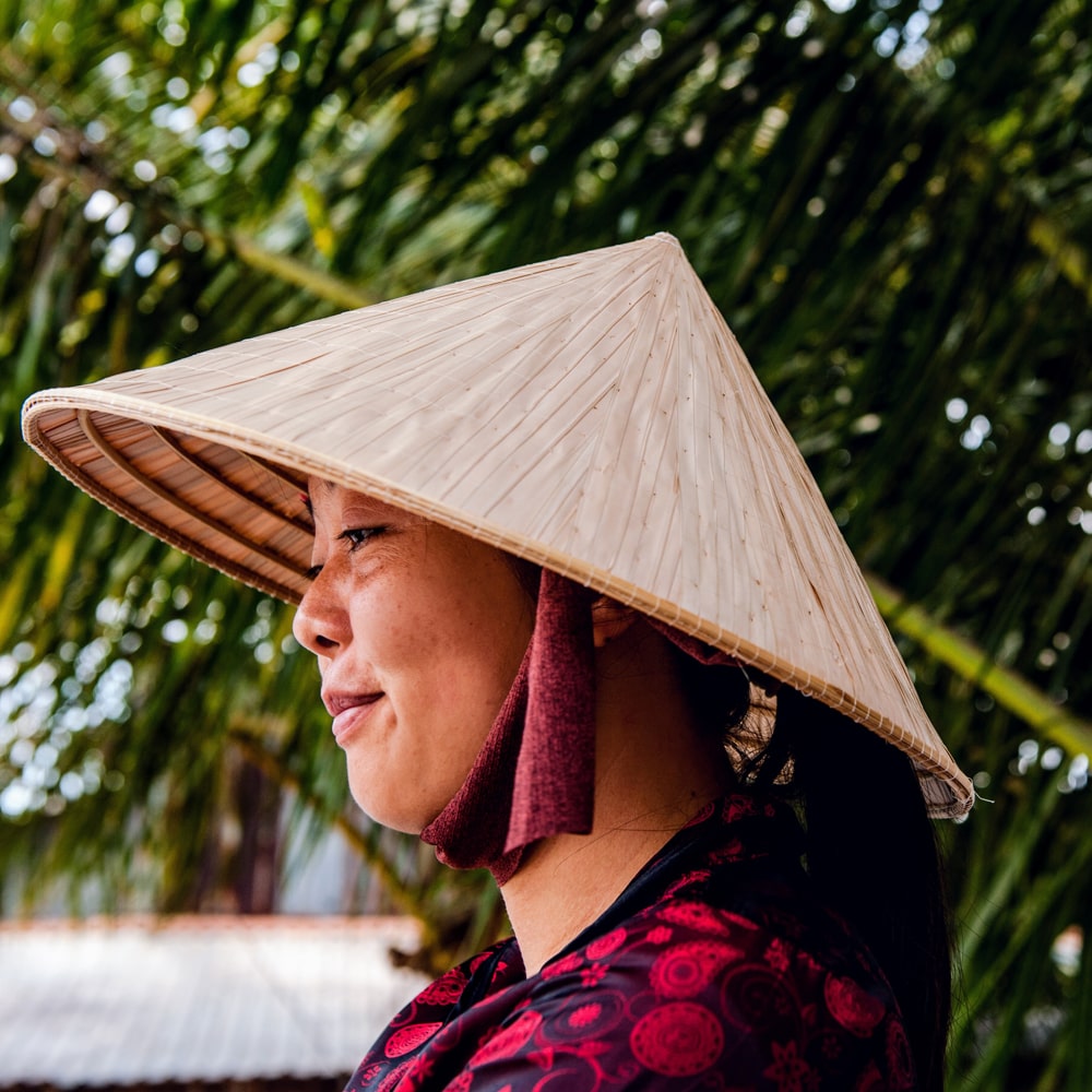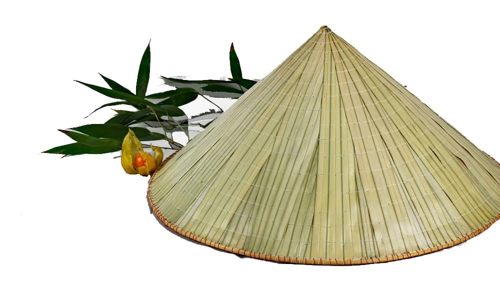 Mit seiner charakteristischen Form, die an ein rechtwinkliges Dreieck erinnert, wird der vietnamesische Reishut durch ein Tuch oder ähnliche Materialien am Kopf gehalten. Geschickt in die dafür vorgesehenen Flechtbänder eingefädelt, bleibt er selbst bei windigem Wetter sicher an seinem Platz. Der Non La von Masawi wird aus hochwertigem Reisstroh und einem robusten Bambusrahmen gefertigt und überzeugt durch seine Leichtigkeit und Langlebigkeit.