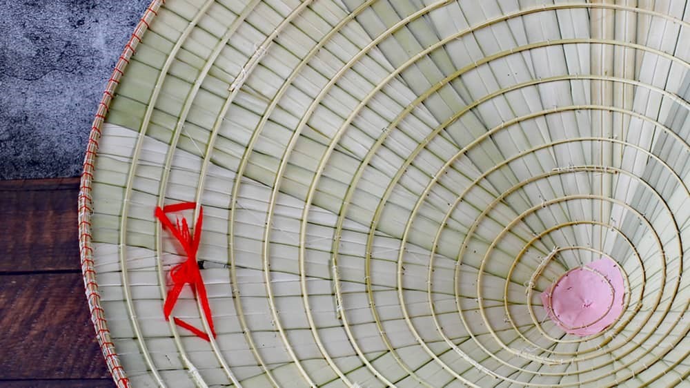Vietnamesischer Kegelhut von Masawi, Original Non La; Durchmesser 40 cm – ein wahrhaft einzigartiges Stück! Lass dich von der Energie und Schönheit des vietnamesischen Reishuts verzaubern. Warum warten? Bestelle jetzt deinen Non La und mach ihn zu deinem neuen Lieblingsaccessoire! Erlebe die Vielseitigkeit dieses wundervollen Hutes und bringe einen Hauch von Vietnam in deinen Alltag!