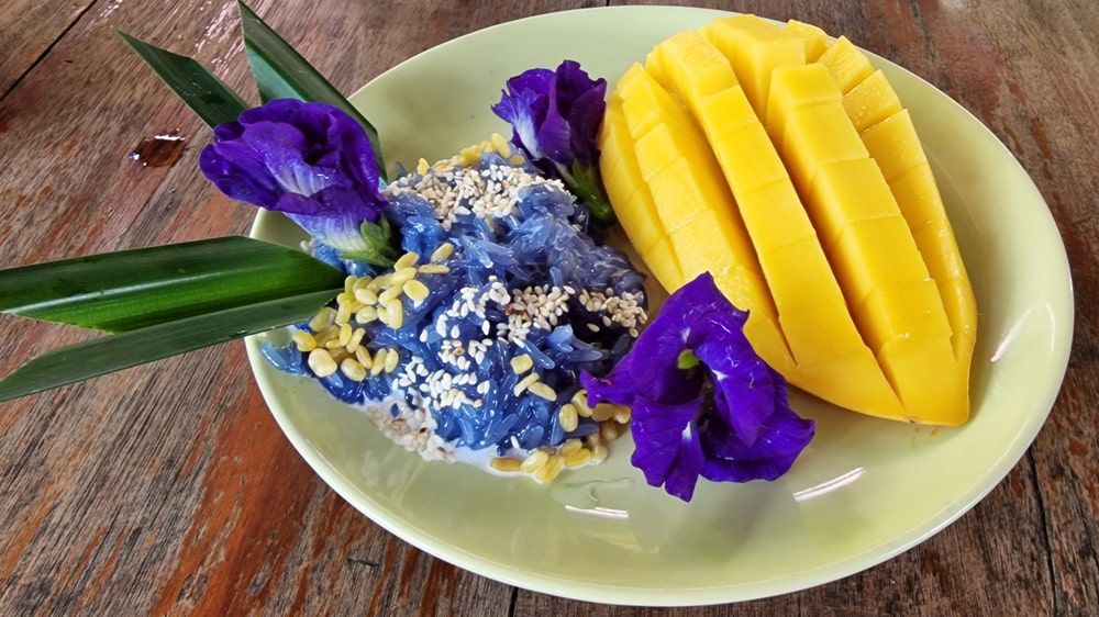 Willkommen in deinem persönlichen siebten Himmel – Blauer Sticky Reis mit Mango