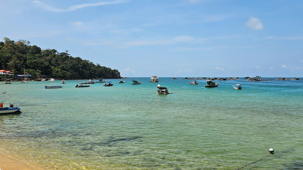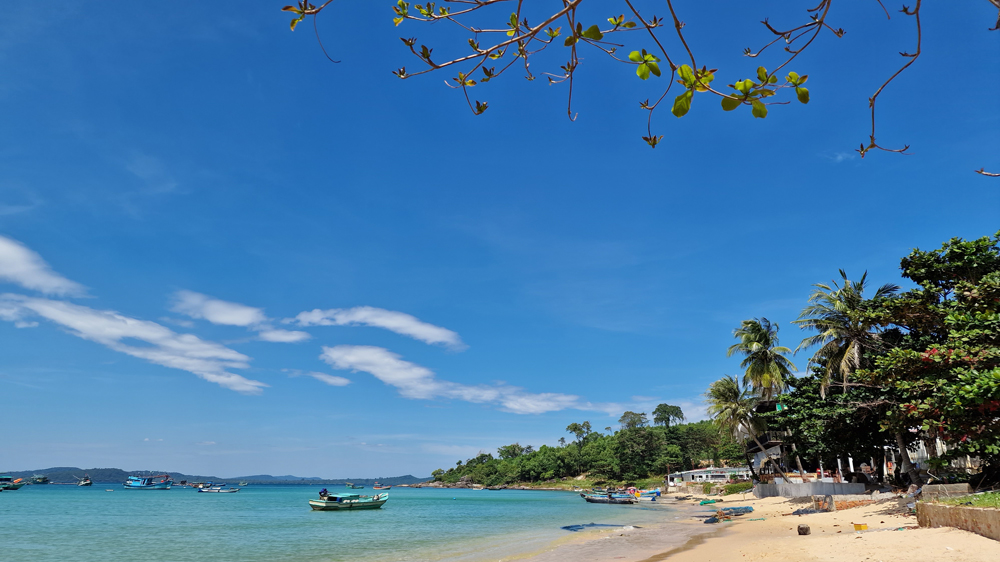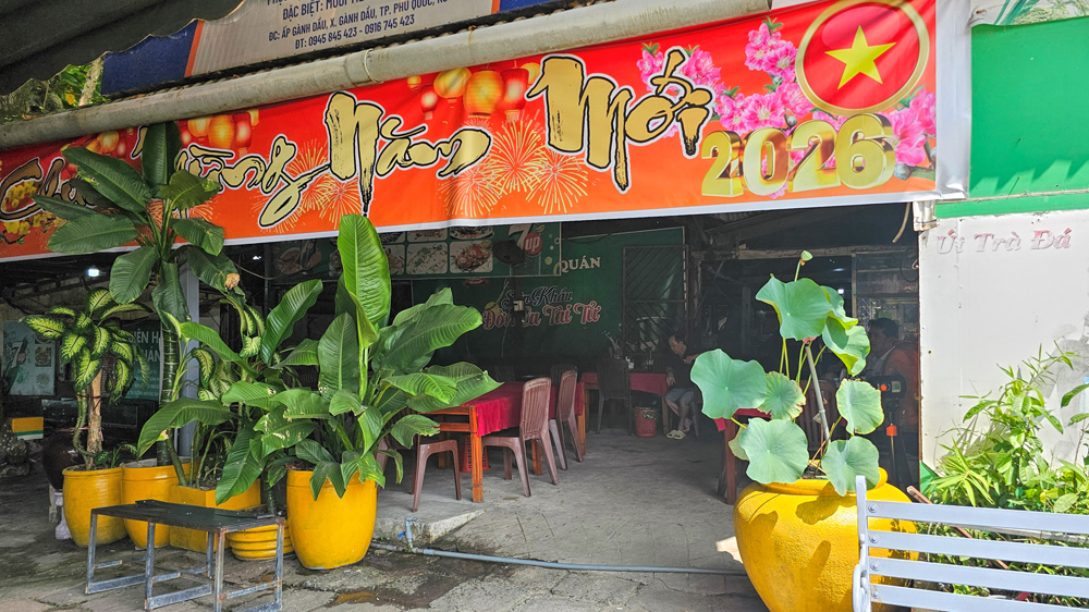 Es ist ein schlichtes Lokal mit einem spektakulären Ausblick. Das Restaurant liegt am nördlichsten Punkt der Insel Phu Quoc, eingebettet in eine kleine sichelförmige Bucht. Der etwa 500 Meter lange Strand wird von zwei Felsvorsprüngen eingerahmt, die weit ins Meer hinausragen.