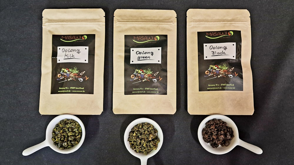 Inhalt: 20 g Green Oolong-Tee der Hao Di Pagode, 10 g Milk Oolong-Tee aus Lam Dong Provinz und 10 g Black Oolong-Tee aus Bao Loc